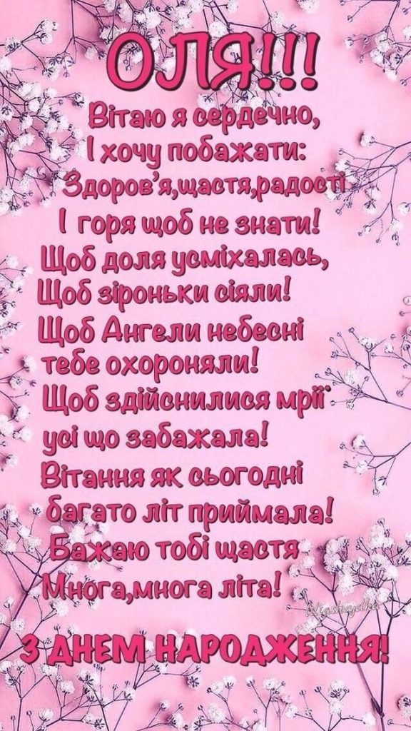 Віршовані привітання Олі з Днем Народження